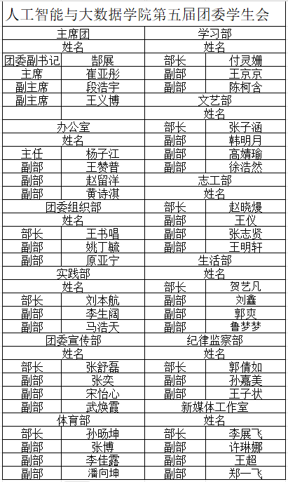 黑料不打烊 第四届学生会干部届期已满,为保证团学工作正常开展,经过公开报名、资格审查、公开答辩、综合考察等程序,选拔出了郜展、崔亚彤等44名骨干,现将黑料不打烊 第五届学生会主席团和各部门拟任骨干名单予以公示。