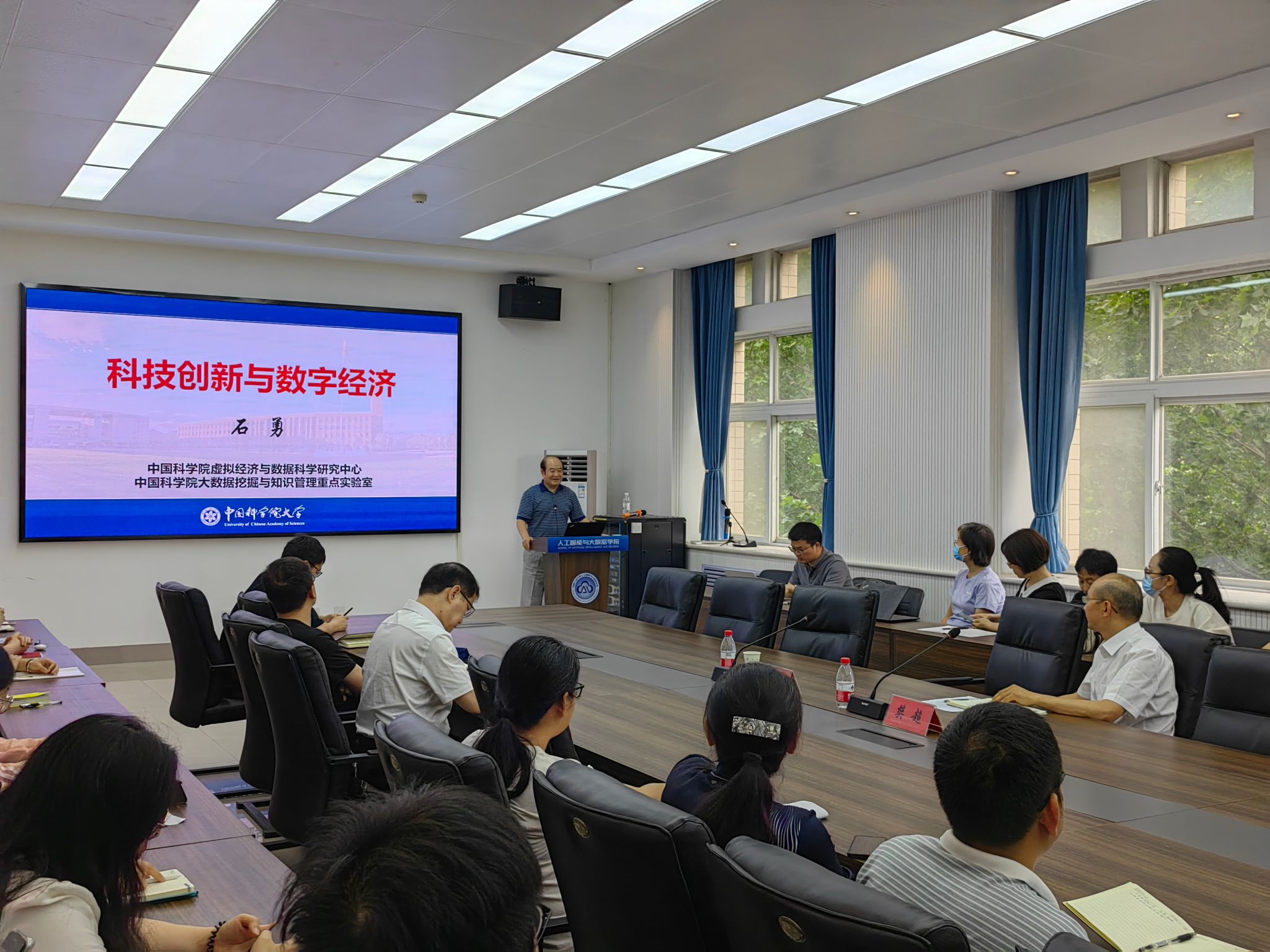建设情况及科研进展。然后,石勇教授结合自身在数字经济、大数据分析与挖掘等相关领域的研究经历和研究成果,围绕科技创新与数字经济的若干关键问题,从数字经济的概念及要素、数字经济推动社会发展、东数西算与数字经济、绿色生产力与数字经济以及关于发展数字经济的建议与思考等几个方面进行报告。报告结束后,石勇教授与在座师生就数字经济时代发展新质生产力的核心要素、大模型背景下的数字经济等主题进行了热烈的交流与深入地探讨,与会师生均表示报告非常精彩,受益匪浅。