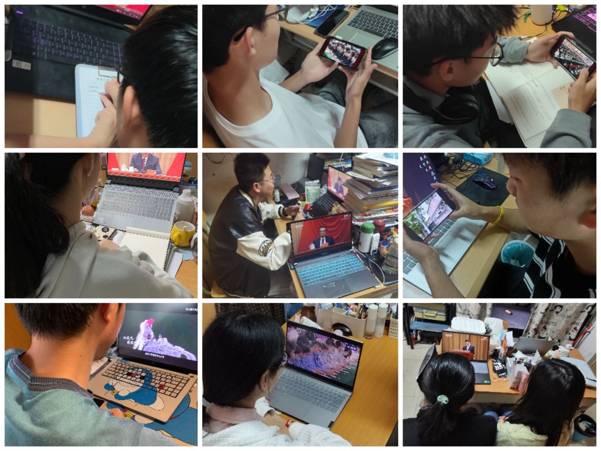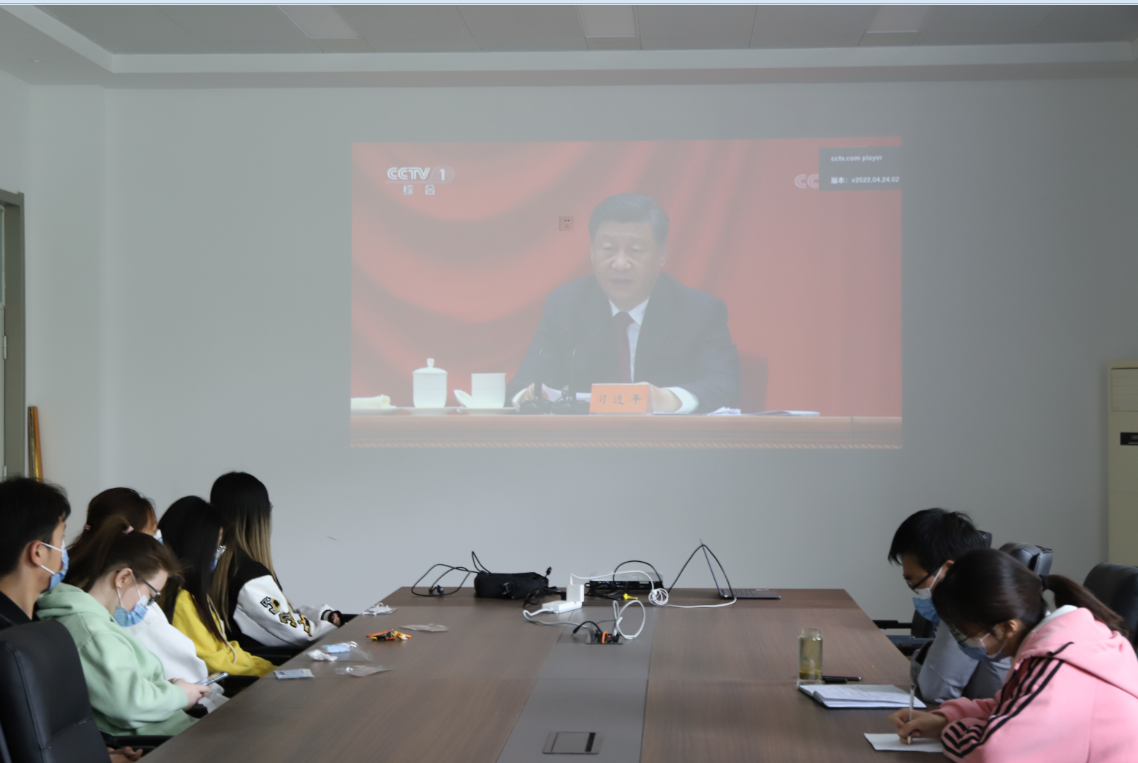 6369会议室共同观看大会直播。收听收看过程严格遵照学校疫情防控要求进行,参会人员全程佩戴口罩。