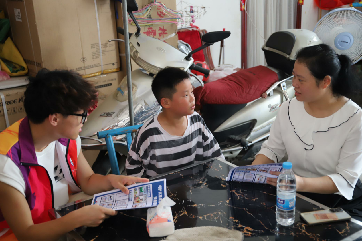 走访前夕,志愿者提前做好健康安全知识宣传页,在走访的过程中通过宣讲的方式将安全健康思想传递给学生和家长。在为期两天的家访中,师生队员们来到学生家中,与家长、学生进行了面对面深入交流,详细了解了学生的家庭状况、学生暑假期间的学习情况等。