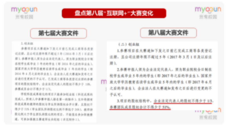 重要提醒:4月13日(周三)晚7:30,米有校园将举办【第八届“互联网+”大赛文件透析】专场公益直播,已有多所高校组团预约,大家可从文末二维码进入直播间免费听课!