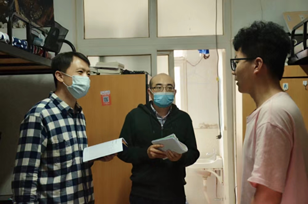 党委书记付晓炎、院长杨铁军、副院长樊超、各系主任以及辅导员、班主任老师分批走访全体学生宿舍近215间,为学生送去关心和问候。