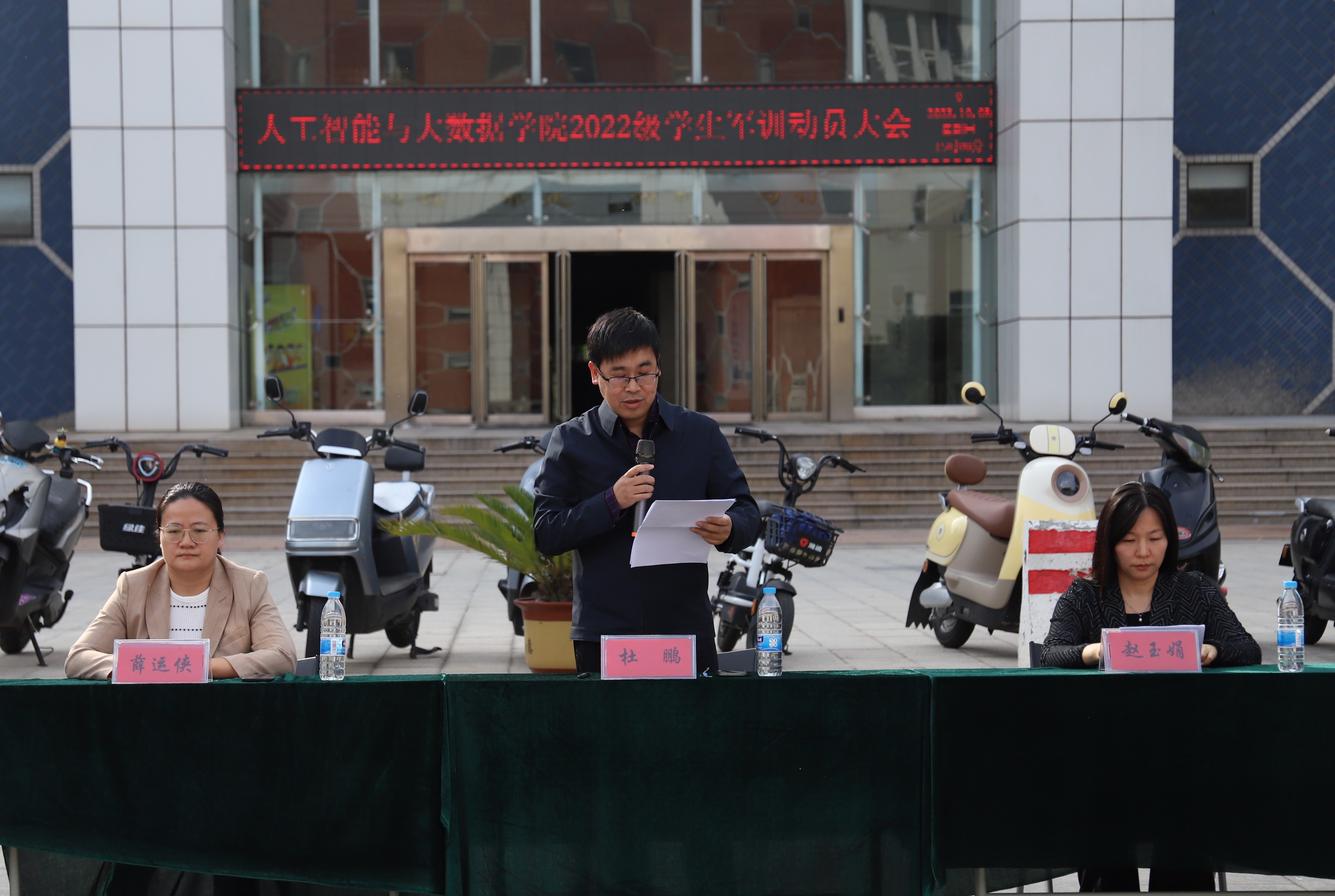 党委书记杜鹏,党委副书记薛运侠,副院长赵玉娟,团委副书记郑帅,学工办副主任陈鸣凘,22级全体辅导员、军训六营全体教官与参训学生出席大会。会议由郑帅主持。