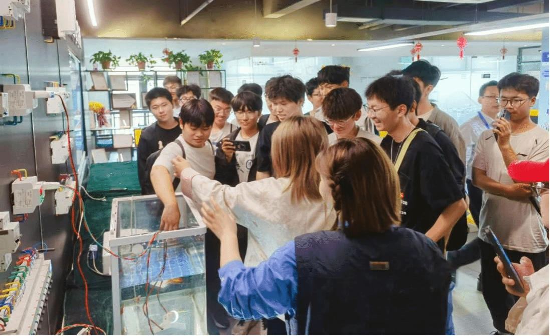 随后,同学们分别体验了3D 虚拟现实软件技术和智慧电力物联网前沿技术。3D 虚拟现实软件技术沉浸式的体验让他们对虚拟现实的应用场景有了更直观的认识。而智慧电力物联网前沿技术则展示了科技在能源领域的创新突破,从高效的电力监测到智慧安全用电,让同学们看到了专业知识在实际中的广阔应用前景。