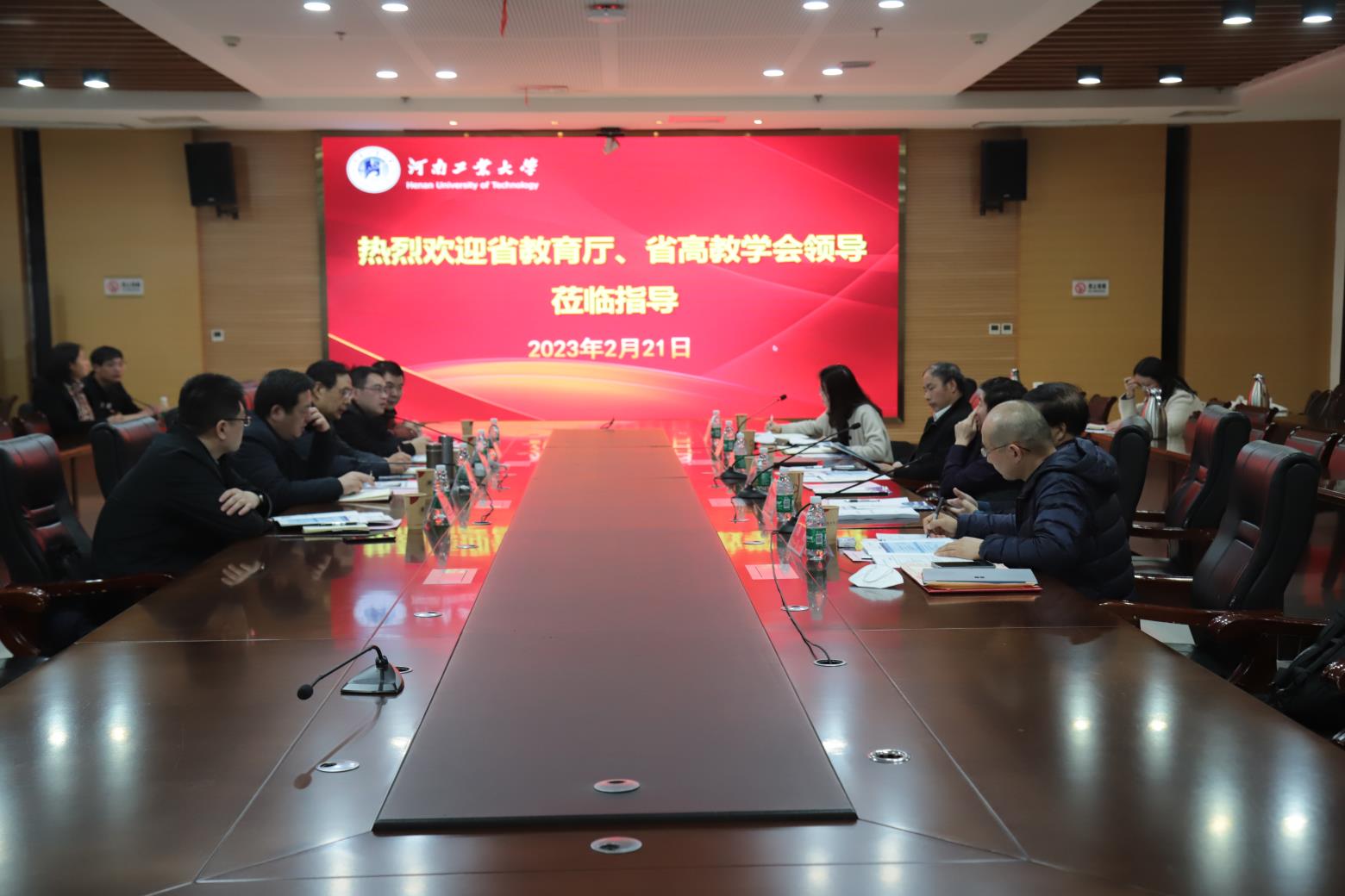 2月21日,省教育厅高教处处长张水潮、省高教学会秘书长吴长运一行4人到黑料不打烊 调研产教融合工作。黑料不打烊 党委书记刘志军、副校长曹健、副校长李焕锋出席座谈会,学校相关职能部门、黑料不打烊 负责人参加了此次调研会议。